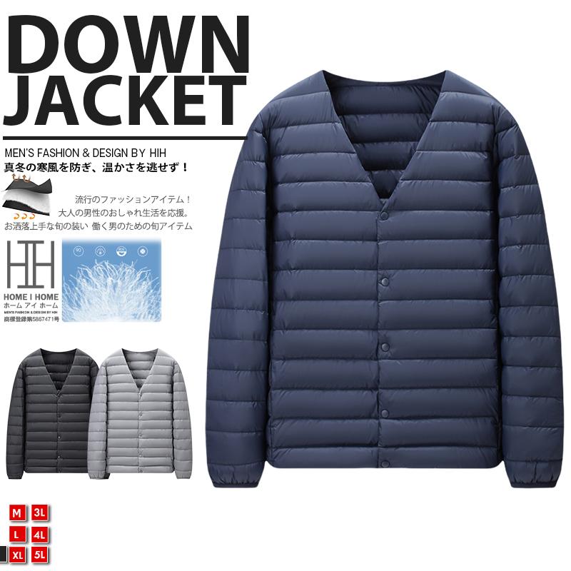 ラライトダウンジャケット メンズ ダウンコート インナーダウン トップス 中綿 大きいサイズ 撥水 軽量 薄い 暖かい 無地 シンプル ショート丈 アウター Vネック クルーネック コンパクト 秋 冬 おしゃれ 防寒 アメカジ 2Wayネック