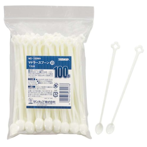 サンナップ マドラースプーン (100本入)ホワイト MD-100WH 1P.