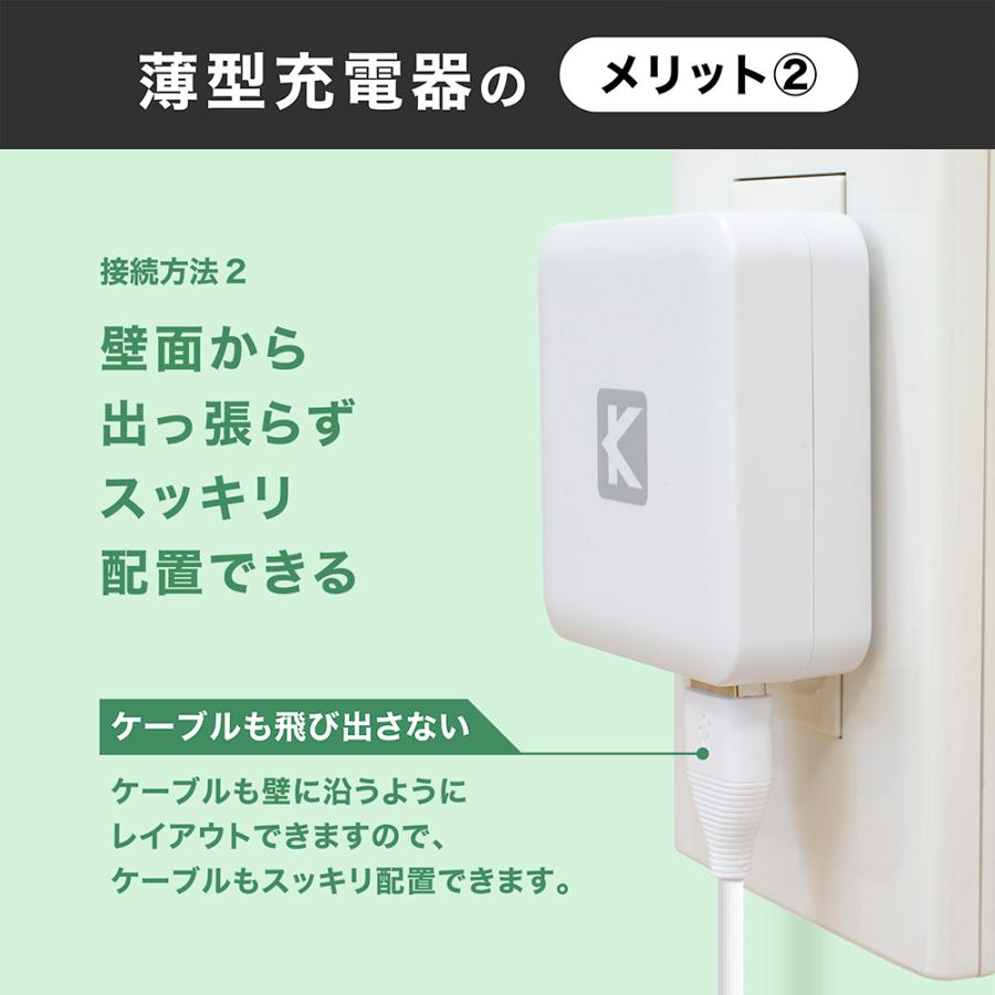 接続された機器を自動認識するIC搭載で、最適な電流を送ることができるため最速で充電することができます。