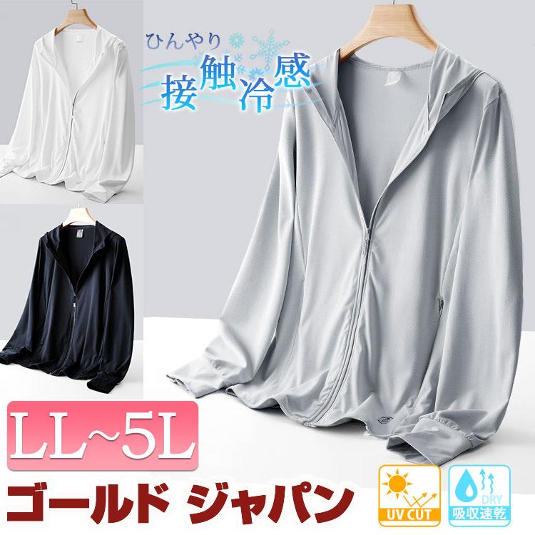 大きいサイズレディース アウター パーカー UVカット&接触冷感&吸水速乾ラッシュガード ラッシュガード UVカット UPF50+ 接触冷感 吸水速乾 紫外線防止 指穴 長袖 日焼け止め 無地 春新作 春服 夏服 冬服 LL 2L 3L 4L 5L ネイビー ホワイト 白 グレー ゴールドジャパン