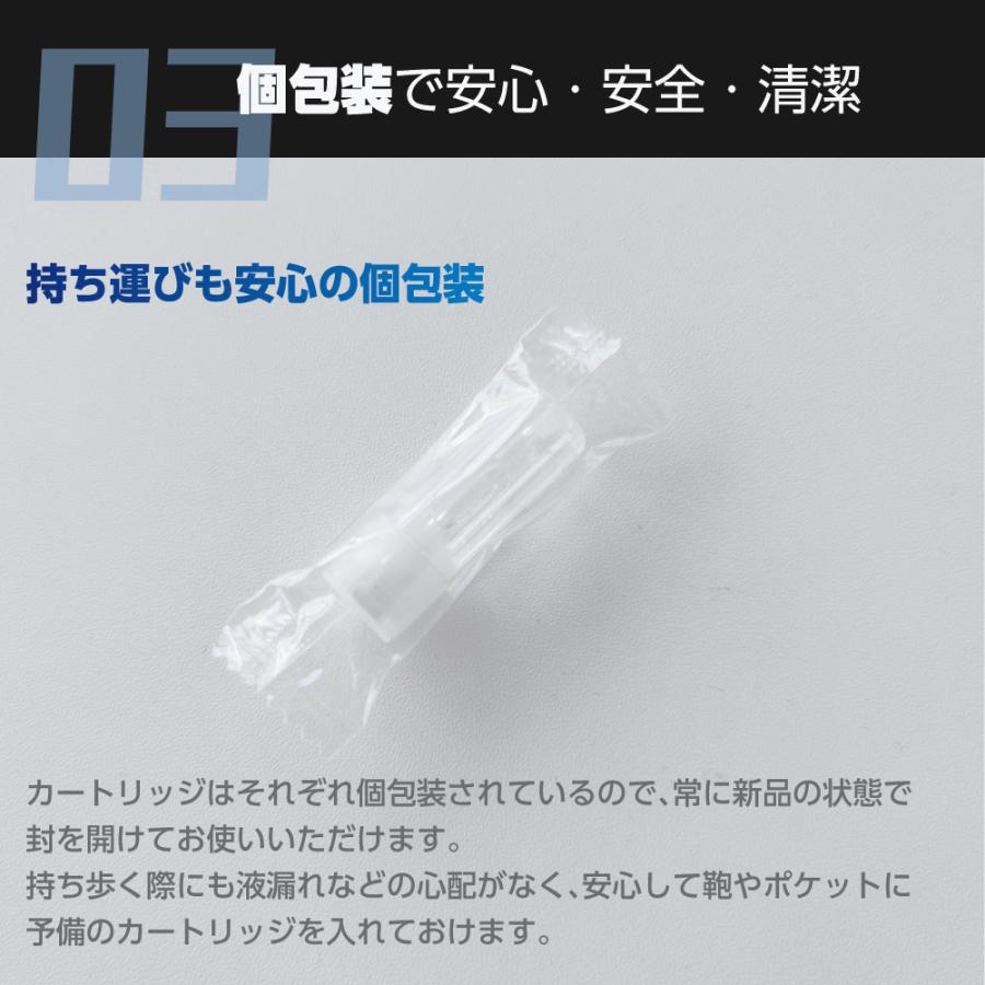 何度かの改良を経てプルームテックプラスの互換カートリッジとしてご満足いただけるクオリティを実現。新たな味の発見に、あるいはカートリッジ切れの予備としてもおすすめです。