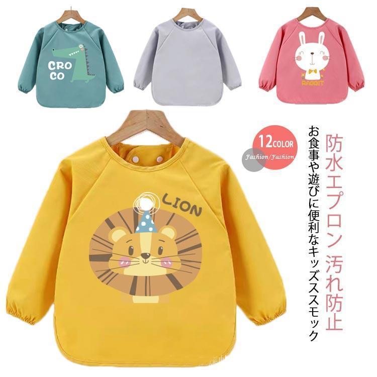 スモック 保育園 防水エプロン 長袖スモック ロングスモック お食事エプロン 女の子 汚れ防止 男の子 可愛い キッズ ベビー お食事エプロン 長袖