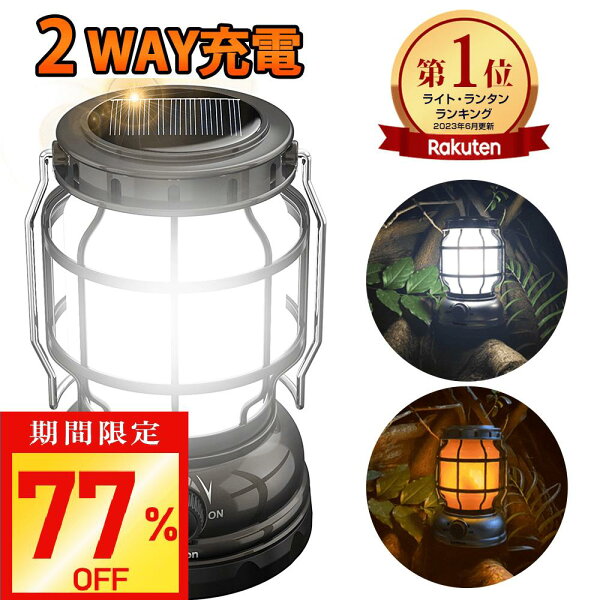 | 優れる機能 | ★「2Way充電&モバイルバッテリー機能付き」: ●USB充電式:マイクロUSB充電ポートを搭載し、PC、モバイルバッテリーなどUSB出力口付きの機器から簡単にランタンに充電できます。 ●ソーラー充電:太陽光が出ている日に日差しの下に置くと自動的に充電することができます。 事前に充電し忘れた時、突然充電が切れてしまった時も「心が強い」のアイテムです。 ●緊急の時、モバイルバッテリーとして、スマホ充電も可能です。 *乾電池充電の場合、スマホへの充電ができません。 *スマホ等、出力先のバッテリー容量によっては、十分に充電することが出来ない場合もございます。 *太陽光により、充電時間が異なりますので、あくまでも緊急対応としてご使用ください。 ★「超高輝度&2つ点灯モード」 : ●最大1,000ルーメンという圧倒的な明るさで、360°全体を照らします。暗闇も、まるで昼間のような明るさに。キャンプの時のメインランタンとして、停電時も、このランタンだけで部屋全体を明るく照らせるので、もしもの時の備えにも最適です。 ●温かみのあるクラシック炎上も、明るい昼白色、2つの点灯モードを搭載。シーンに合わせて使い分ければ、家でも外でもいつでも使えます。 ★「明るさ無段階の調節&最大利用時間20h」: ●2つ点灯モードでも、明るさが無段階で調節できます。災害や停電時など、最大に明るく、夜間に屋外やキャンプ場で使用するときは、周りに配慮して暗めに、周囲の環境や時間帯を選ぶことなく使用できます。 ●従来のランタンと違うのは、満充電の状態で最大連続使用時間は20Hです。(使用モードにより、異なります。) ★「IPX4防水&コンパクト」 ●屋外や水の飛沫のある場所でも、安心して使用できるように、IPX4の防塵防滴仕様。雨や水しぶきなどの水、砂やほこりなどの塵の侵入を防ぎます。 ● 軽くて使いやすい、重さ約260gの軽量モデル、 持ち運びやすくて、旅行や出張もぴったり。 | ||