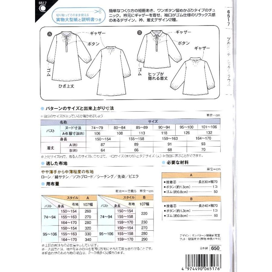パターン ( 型紙 )レディ プルオン チュニック ブラウス( 簡単 実寸大 作り方 レシピ 服 洋服 トップス ジャケット ベスト ) 6517 切り取って、そのまま使える実物大型紙と説明書つき。必要な生地の目安が掲載してあります。( パターン 型紙 簡単 実物大 作り方 レシピ )↓▼▽重要▽▼↓ スマホでご覧のお客様へ ↓▽▼↓▽▼↓詳細につきましては、下記の ”商品情報をもっと見る” をクリックしてください。↓