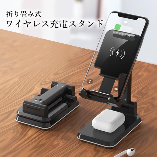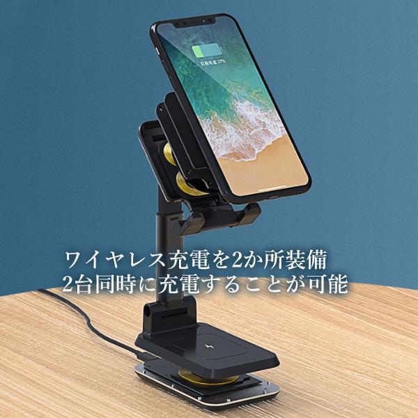 ワイヤレス充電スタンド 急速 ワイヤレス充電器 スマホスタンド 卓上 折りたたみ 2台同時 ブラック