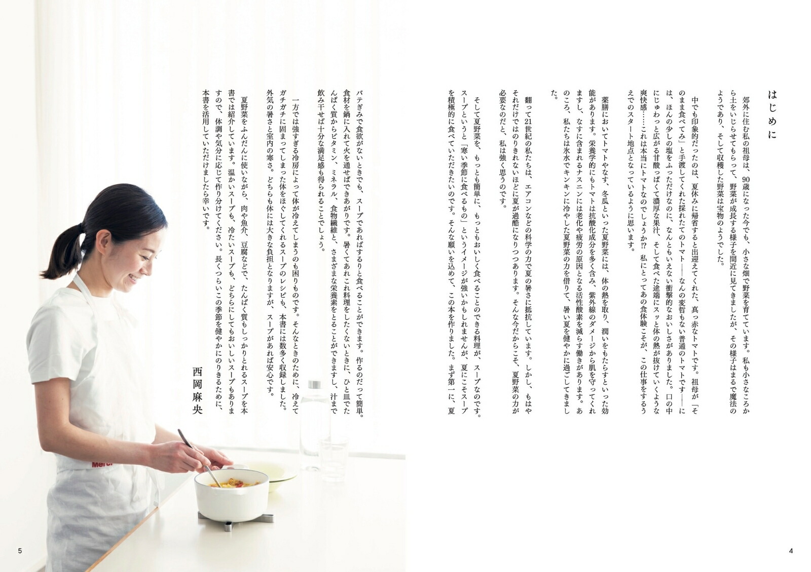 夏野菜たっぷり 薬膳と栄養学 簡単美味!長くつらいこの季節を、健やかにのりきる!スープは夏の「完全食」です。夏スープ、はじめました!“野菜の料理家”西岡麻央さんのあえて夏にこそ食べたいヘルシー&大満足なスープのレシピ集。