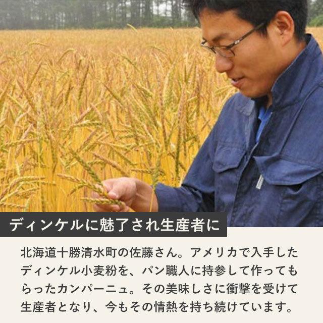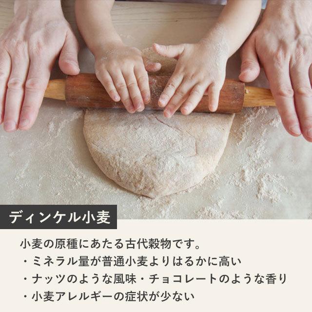 北海道産ディンケル小麦粉(スペルト小麦)です。パン用小麦の原種にあたり、現代の小麦に比べてビタミン・ミネラルなど栄養価が高いことで注目されています。