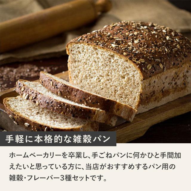 ホームベーカリーを卒業し、手ごねパンに何か一手間を加えたいと思っている方向けに、当店がおすすめするパン用の雑穀・フレーバーの3種セットです。