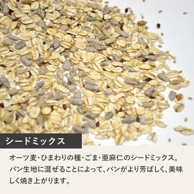 オーツ麦、ひまわりの種、ごま、亜麻仁のシードミックスです。パン生地に混ぜることによって、パンがより芳ばしく、おいしく焼き上がります。
