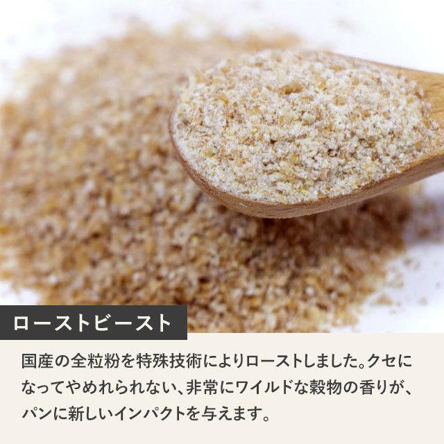 国産の全粒粉を特殊技術によりローストしました。クセになってやめられない、非常に芳ばしいワイルドな穀物の香りが、パンに新しいインパクトを与えます。