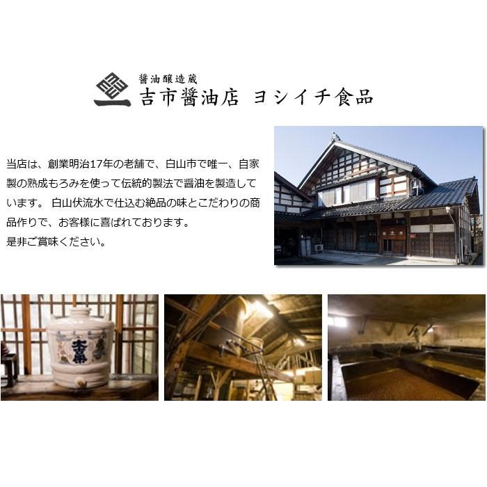 老舗の醤油蔵「吉市醤油店」が、国内産の原材料にこだわり、独自の発酵醸造技術により生み出した珍味。強すぎない塩気と濃厚な旨みは、クセになり酒が欲しくなる。オリーブオイル、ニンニクとパスタと和えても◎。