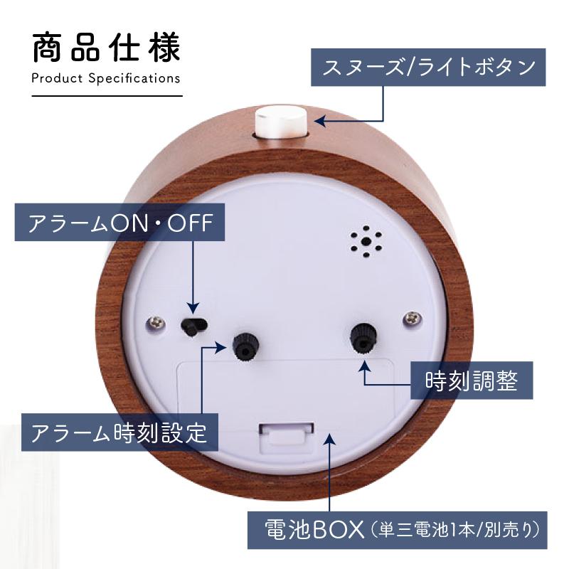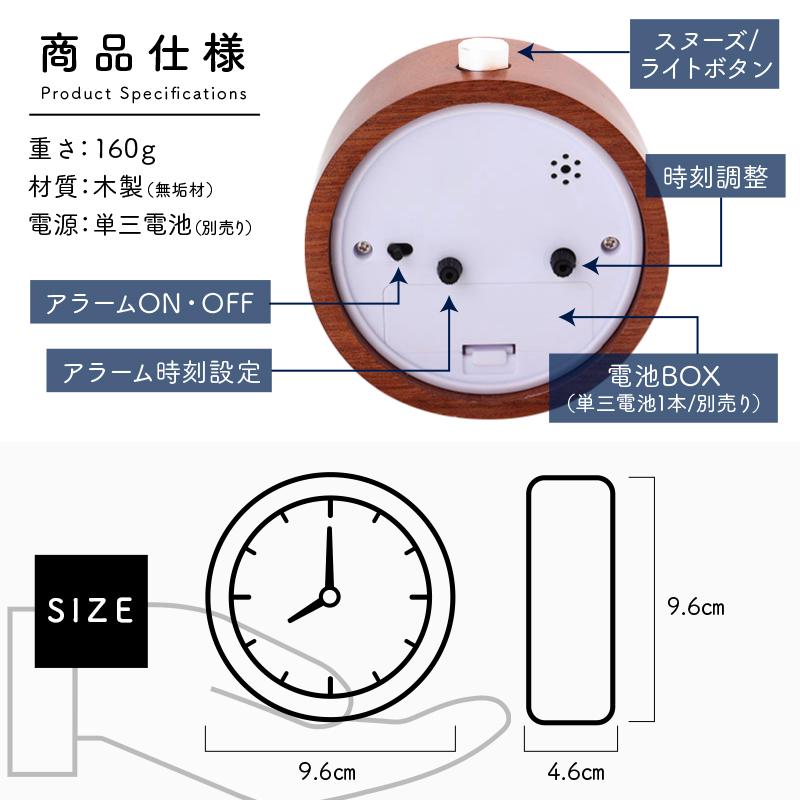 ・スヌーズ機能で、ワンタッチで5分後に再アラームを設定可能です。