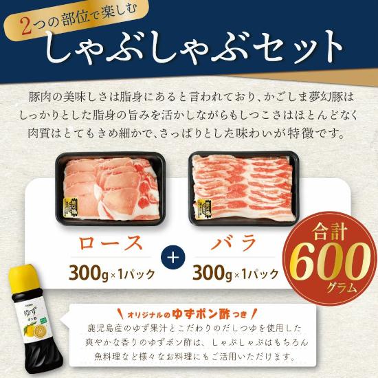 夢幻豚ロース 300g×1パック、夢幻豚バラ 300g×1パック、ゆずポン酢 280ml×1本