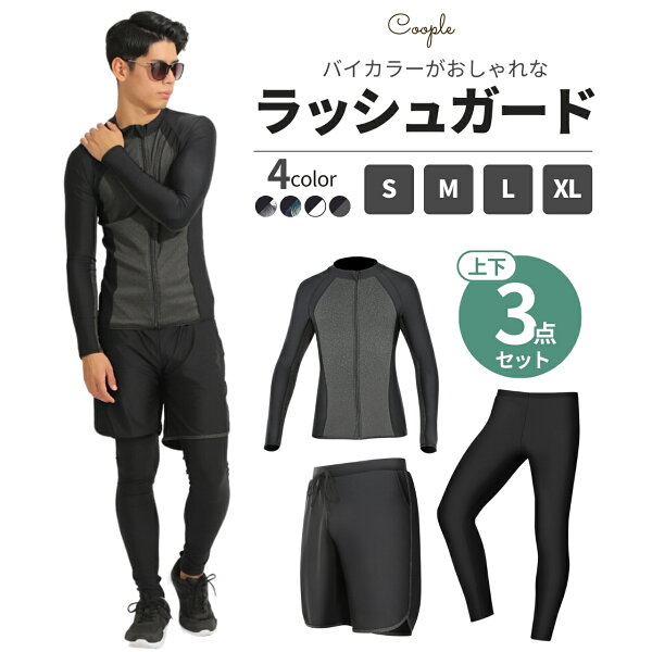 ラッシュガード メンズ 水着 フィットネス 長袖 上下 3点 セット 水陸両用 前開き uvカット 無地 大きいサイズ パンツ レギンス ロング おしゃれ フードなし サーフィン 男性 キッズ 男の子 子供 140 150 160 130 170 ビーチ 水泳 サーフパンツ 速乾 オシャレ セットアップ ゆったり UVカット 海 海水浴 プール こども 子ども 中学生 高校生 ボーイズ タイツ ハーフパンツ 柄 釣り スタンドカラー ジップアップ 楽天 上下セット スポーツウェア ブラック 黒 アウトドア 日焼け止め 泳げる 男の子 ジップアップ upf50 即日発送 あす楽 透けない スリム 中学生 大学生 ピッタリ グレー 全身 日焼け止め 日除け 日よけ 日焼け防止 ファスナー 着たまま 160センチ スパッツ 高校生 水陸 170 体型カバー 紫外線対策 レジャー フィットネス