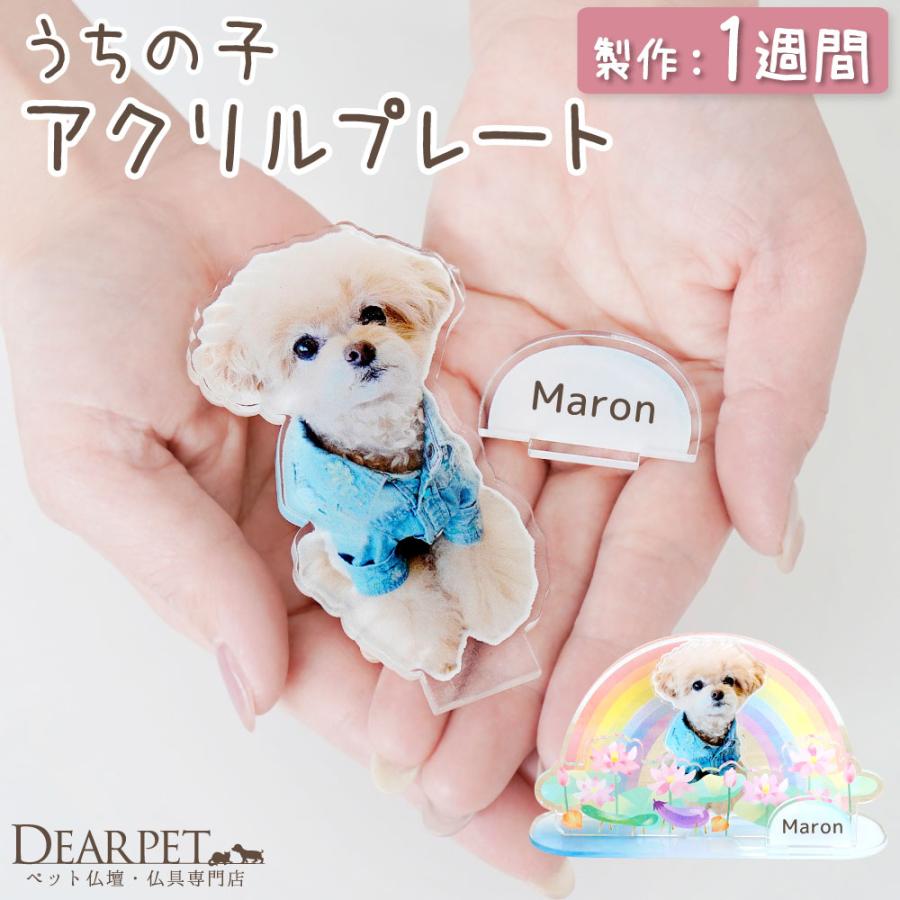 かわいい姿を偲べるオーダー写真プレートで、より特別な祈りの場に。心を込めてお作りいたします。- セット内容 -お写真プレート×1、ネームプレート×1※スタンドの台座、虹の橋パーツ、お花のパーツは付属していません※関連ワード:ペット 可愛い 記念品 オリジナル ペットメモリアル アクスタ デザイン オーダーメイド f00ta18 オブジェ ディアペット DP