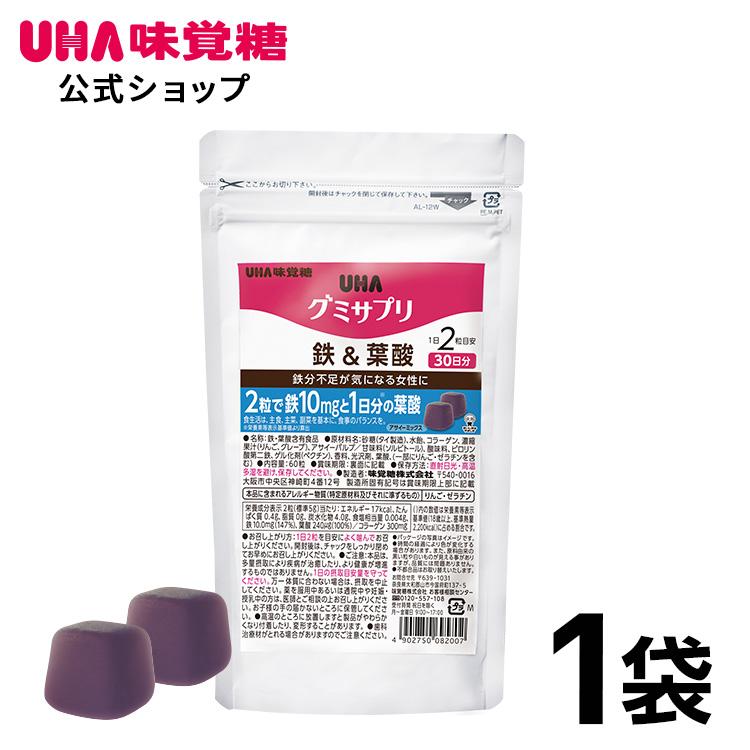 【公式】UHA味覚糖 通販限定 グミサプリ 鉄&葉酸 30日分(60粒) アサイーミックス味 1袋