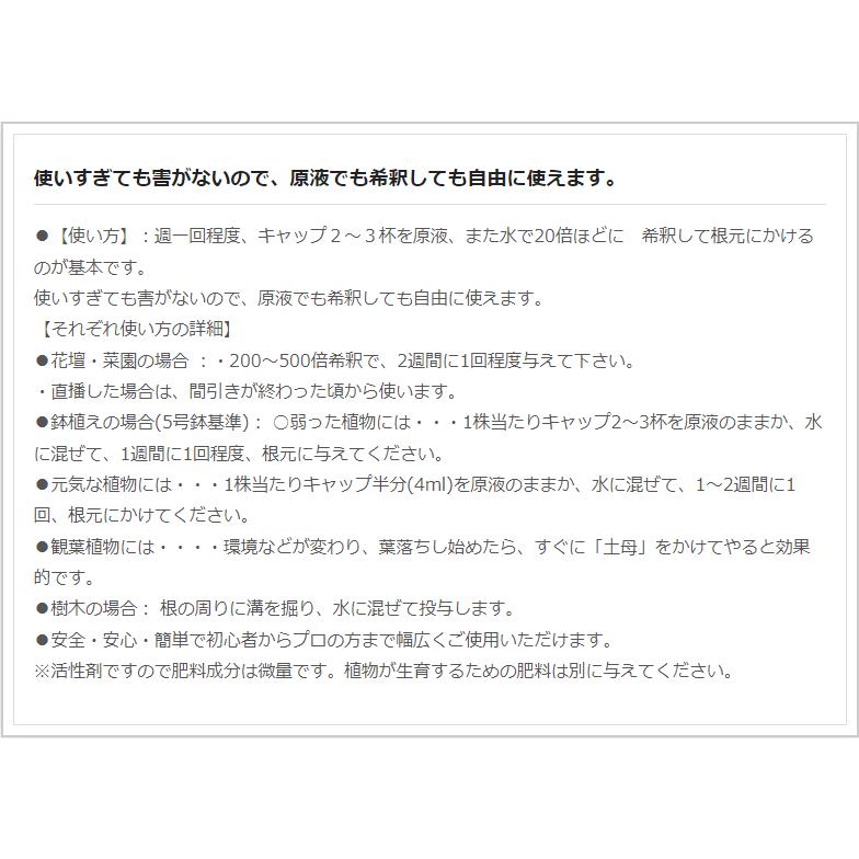 週一回程度、キャップ2〜3杯を原液、また水で20倍ほどに 希釈して根元にかけるのが基本です