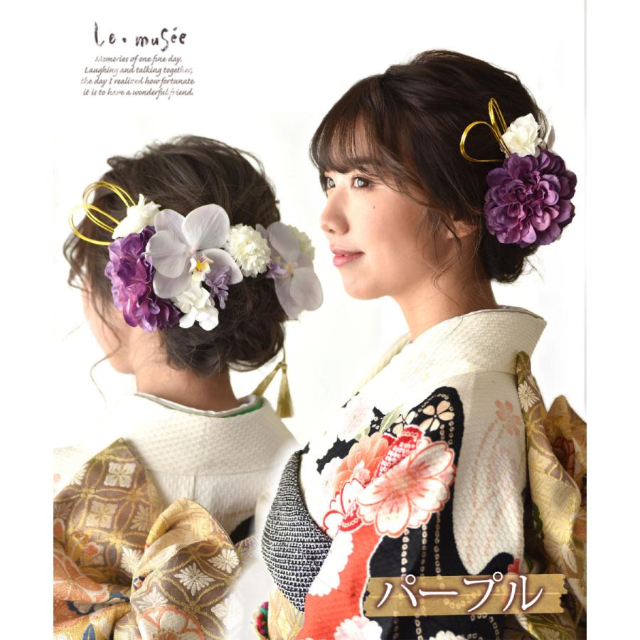 商品名:成人式 髪飾り 和装 花 リボン 水引 卒業式 袴 ヘッドドレス セット ダリア 振袖 ウェディング 白無垢 フォーマル 留袖 結婚式 シルクフラワー 造花 雅 全5色 おしゃれ 人気