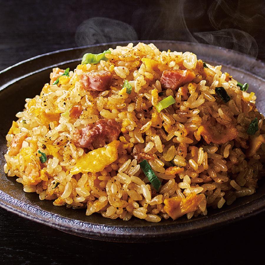 焦がしたにんにくのマー油と葱油の香ばしさで、噛むほどにコクが広がるガツンとおいしい炒飯です。独自製法により、できたてはもちろん、炊飯ジャー保温してもおいしさが長持ちします。小袋タイプなので、必要な分だけ提供が可能です。冷蔵庫解凍しておくことで、電子レンジでの時短調理も可能です。