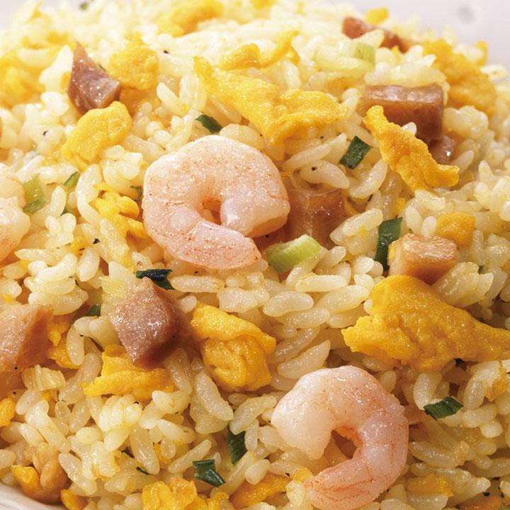 ■原材料:米、全卵、野菜(ねぎ、たけのこ)、焼き豚、えび、植物油脂、食塩、清酒、風味油、しょうゆ、豚脂、砂糖、がらスープ、豚骨エキス、ポークエキス調味料、ポークエキス、香辛料、でん粉、発酵調味料、卵白粉、いため油(ラード、なたね油)/調味料(アミノ酸等)、着色料(カロチン)、酸化防止剤(ビタミンC、チャ抽出物)、(一部にえび・小麦・卵・ごま・大豆・鶏肉・豚肉を含む)