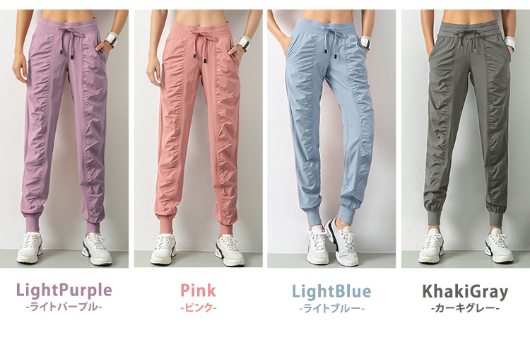 メール便送料無料 ジョガーパンツ レディース ヨガパンツ ヨガウェアパンツ ランニング ジョギング フィットネス ピラティスウェア ジムウェア エクササイズ ダンス スポーツ トレーニングパンツ ロングパンツ 速乾 吸汗 ウエスト 紐 調節 裾 リブ 薄手 黒