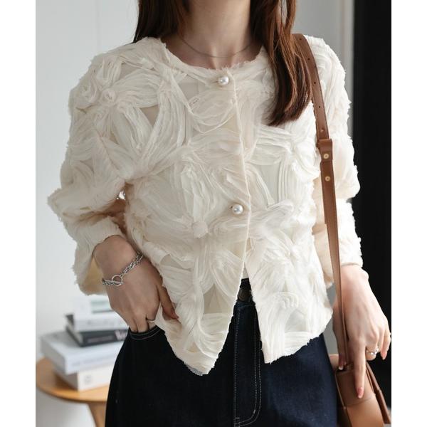 キーワード:ジャケット ノーカラージャケット レディース ショート丈 レース 刺繍