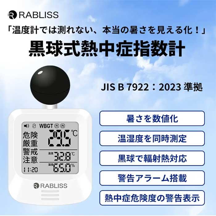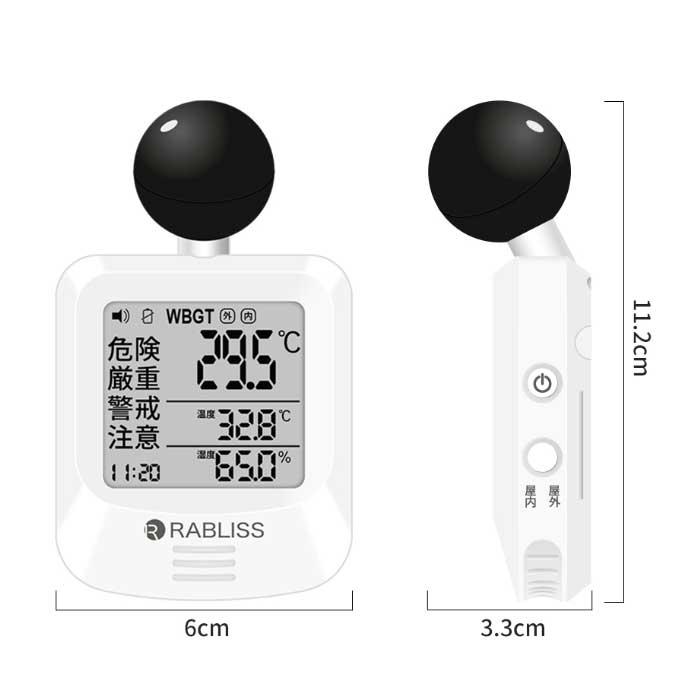 ・WBGT、気温、湿度、輻射熱をまとめて測定・危険レベルに応じた4段階アラーム付き・室内外どちらでも使用可能・シンプル表示【商品詳細】セット内容:本体、カラビナ、バンド(短)、バンド(長)、お試し用電池サイズ:W60mm×H112×D33mm質量:約79g(電池含む)警告アラーム:音量3段階 大/小/なし電池寿命:約8カ月(1日4時間使用時)電源:CR2032コイン形リチウム電池×1個 DC3V