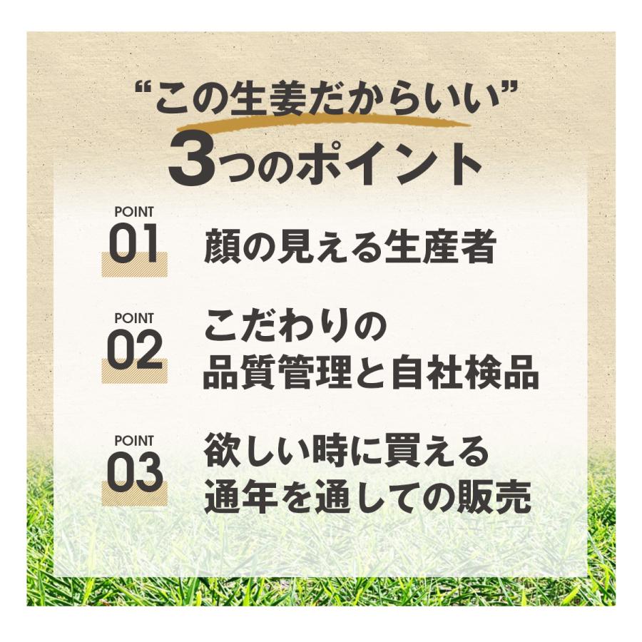 無農薬にんじんの生産者である長崎県の島原自然塾さんが土壌消毒・除草剤不使用の畑で栽培した国産無農薬ショウガです。季節により新生姜または、古根生姜となります。古根生姜とは露地栽培で育てた生姜で、新生姜よりも辛みがあり、熟成されるにつれ乾き辛みも加わっております。生姜パウダー(しょうがパウダー)、粉末生姜、蒸し生姜、ドライ生姜など様々な加工食品をお取り寄せする方も多いと思いますが、健康維持に防腐剤・添加物不使用の生姜汁を無添加人参ジュースに加える方もいらっしゃいます。冬場の風邪予防にもぴったり。生姜シロップ、生姜紅茶、はちみつ生姜、生姜湯などお菓子・お料理におすすめです。生姜の保存方法は濡らした新聞紙で包み小分けして冷蔵庫の野菜室に保管するのがおすすめです。また、長期保存する場合は生姜をすりおろしてから冷凍保存をしてください。こちらの商品は規格外品のためご自宅用や業務用としてのご利用がおすすめです。その他、ピカイチ野菜くんでは人参ジュース用の無農薬人参(時期により有機JAS認証の人参)やりんご、レモンなど訳アリの野菜や果物の販売をしております。