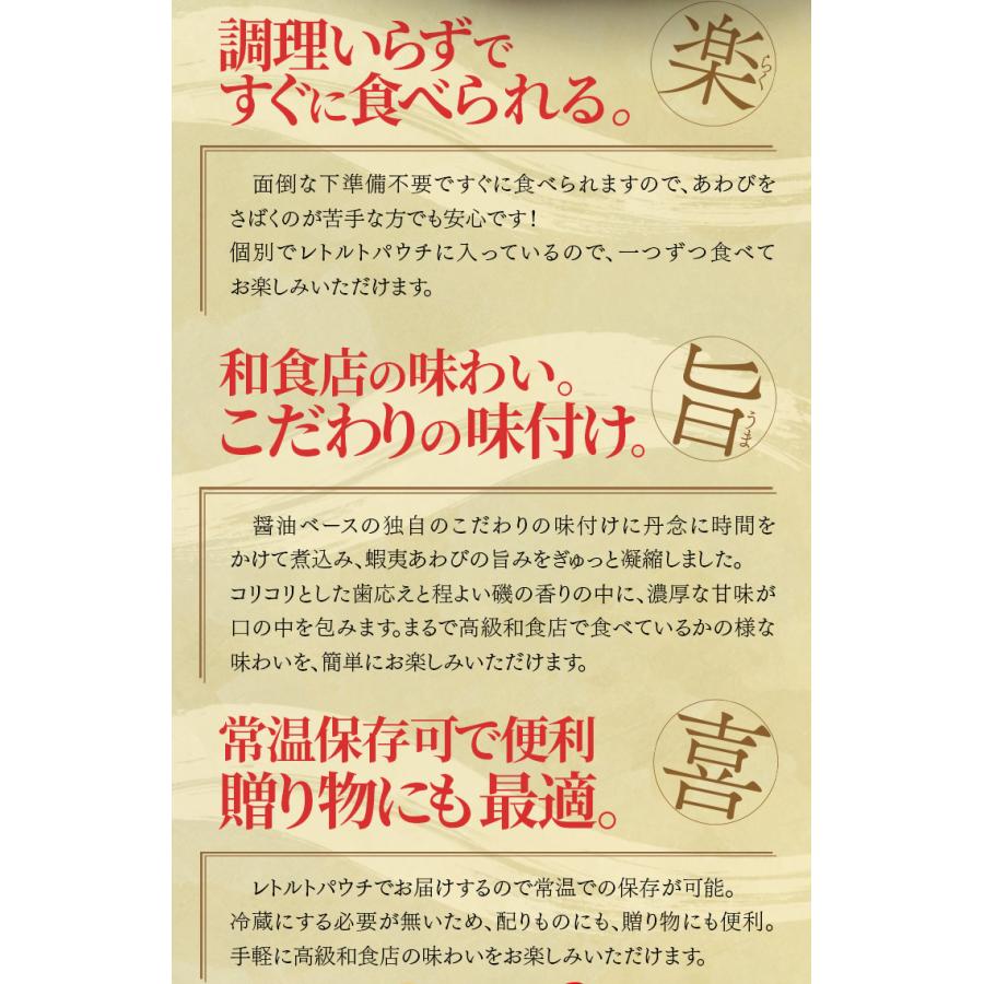 じっくりと煮込んだ醤油と鮑の旨み。調理済みなのでお手軽に食卓にも贈り物にも