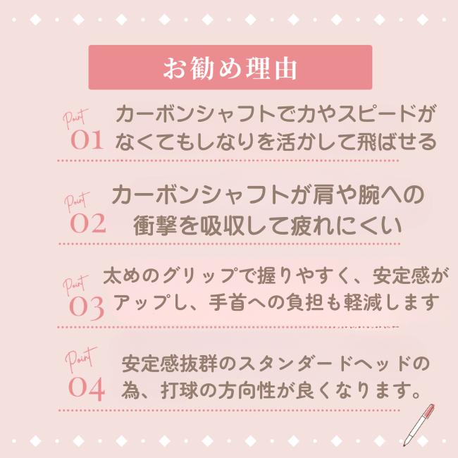 カーボン製の為、しなりを活かしてスピードや力やスピードがなくてもボールを遠くへ飛ばすことが出来ます。