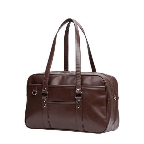 [YOBLUELO] スクールバッグ 革 スクバ 合皮 女子 高校生 大容量 肩紐長い イヤホンマークなし 茶色 黒 背負える (コーヒー)
