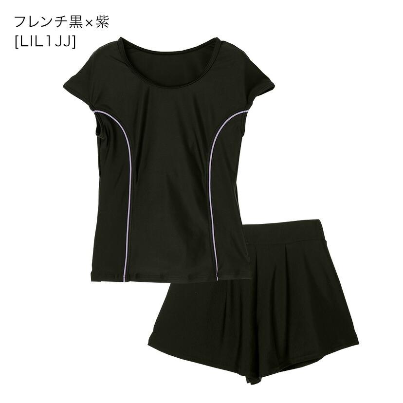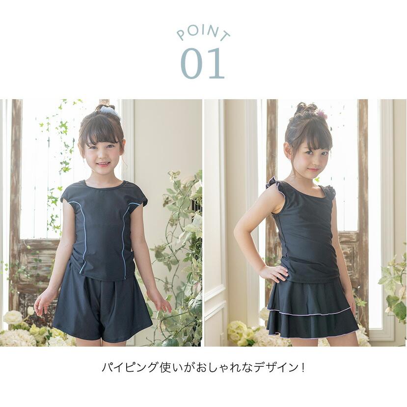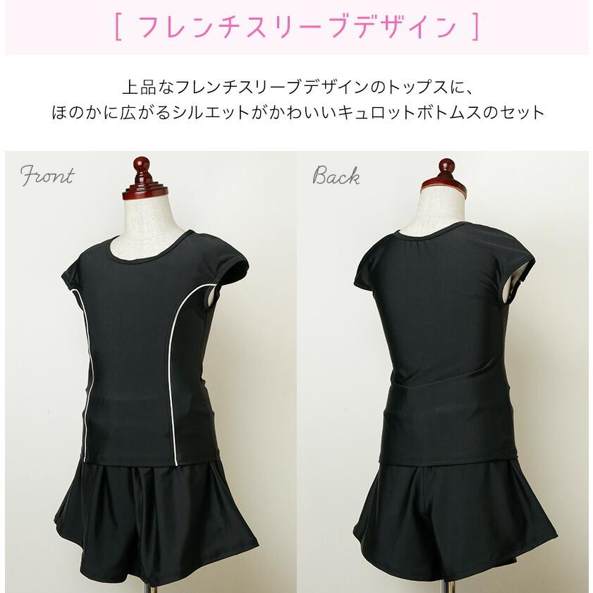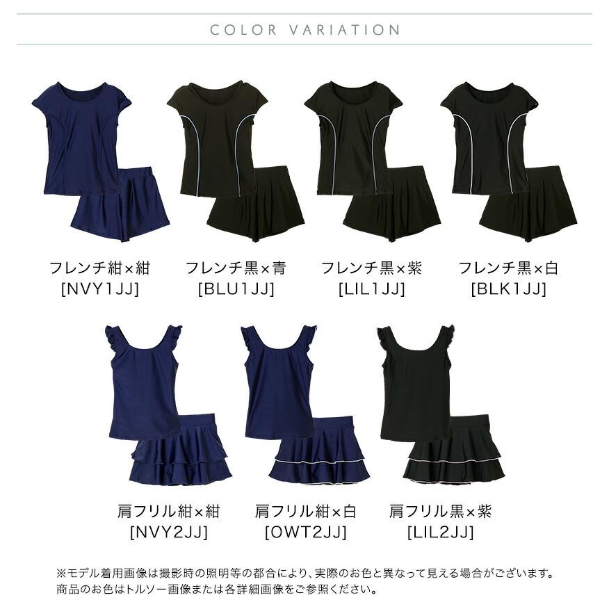 [水泳授業 学校プール授業 110 120 130 140 150 160 170 cm 紫 ライラック パープル 黒 ブラック ネイビー 紺 ブルー 無地 セパレート 上下セット インナーパンツ一体型 肩フリル フリル キュロット スカート 女の子 キッズ ジュニア 小学生 中学生 高校生 学校プール キャサリンコテージ 大きいサイズ]