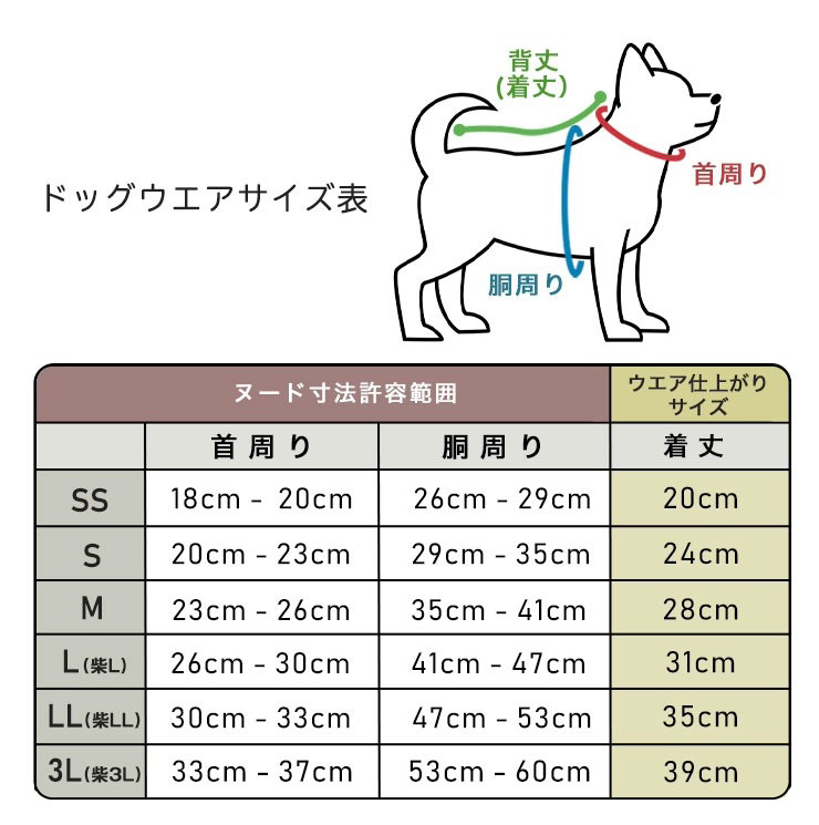 ※サイズ展開:SS S M L LL 3L SD MD 柴L 柴LL 柴3L