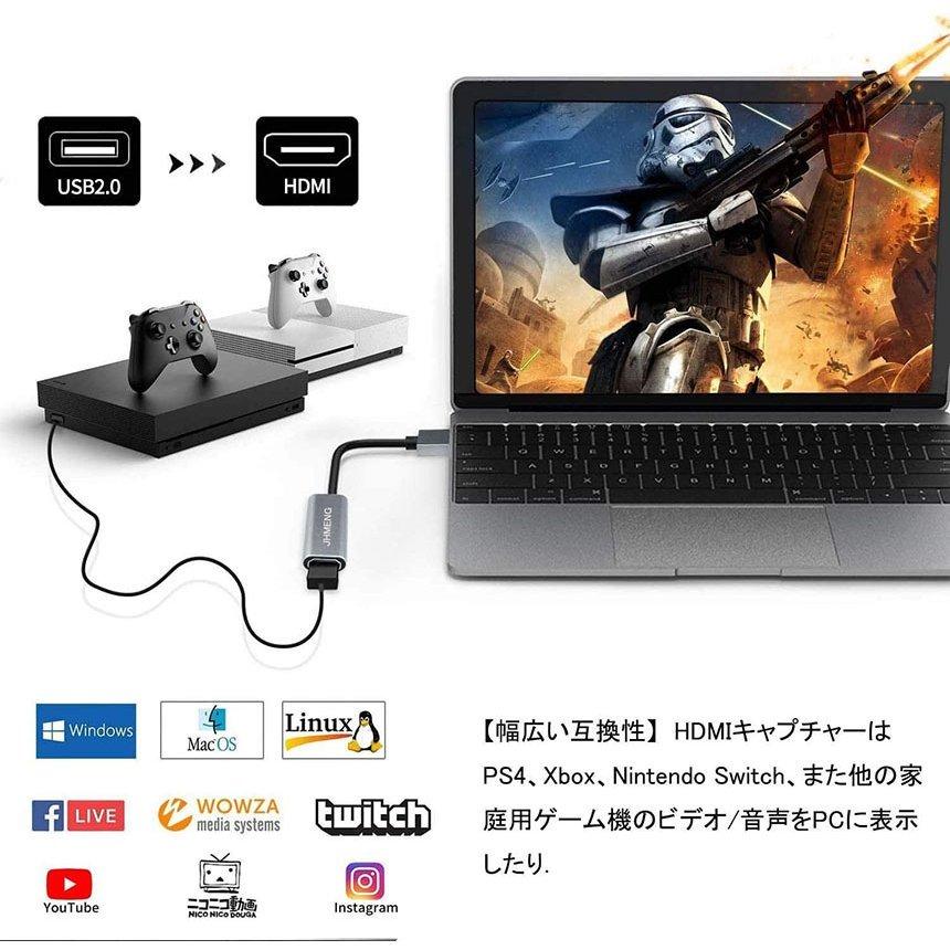 【幅広い互換性】HDMIキャプチャーはPS4、Xbox、NintendoSwitch、また他の家庭用ゲーム機のビデオ/音声をPCに表示したり、録画/ライブ配信(ライブ)したりすることができます。これで実況ゲームビデオをYouTubeや、Facebookや、Twitterなどのビデオ配信サイトに投稿できます。