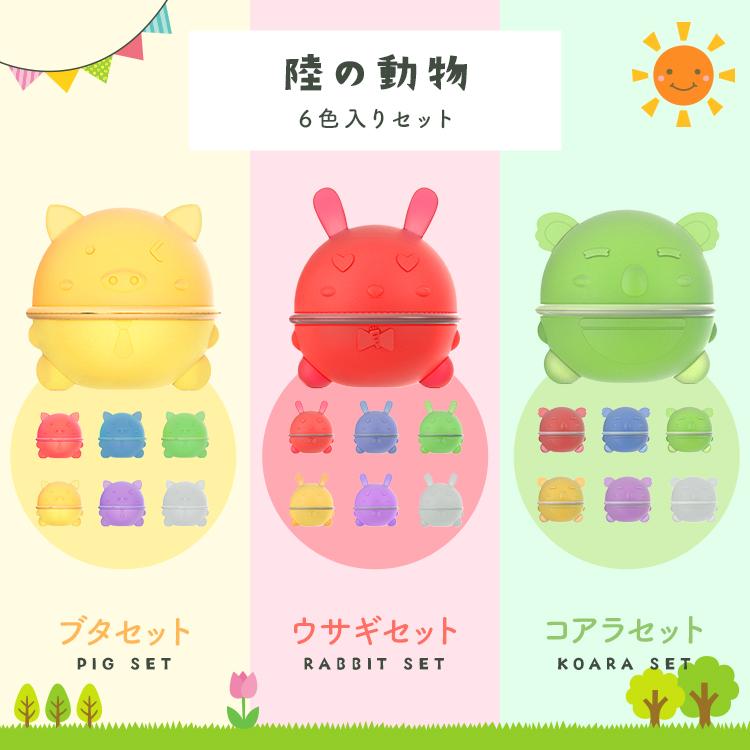 【内容】ブタ・ウサギ・コアラ・アザラシ:6個入り(イエロー/パープル/レッド/ホワイト/ブルー/グリーン)