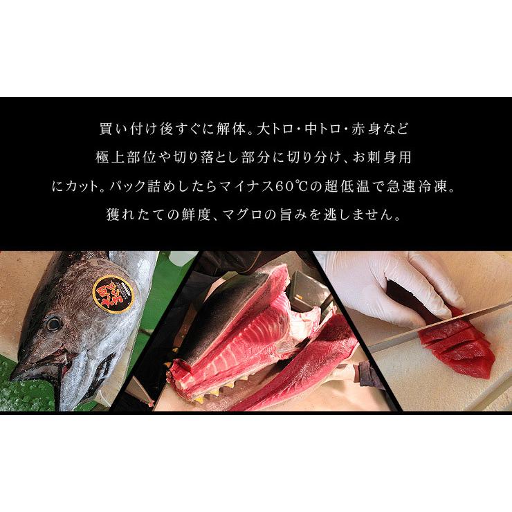 最も貴重な部位「大トロ」。天然モノ・極上のとろける食感、脂の甘みは絶品です!お刺身用にカット済みだから可食部100%、しかも自然解凍でOK!