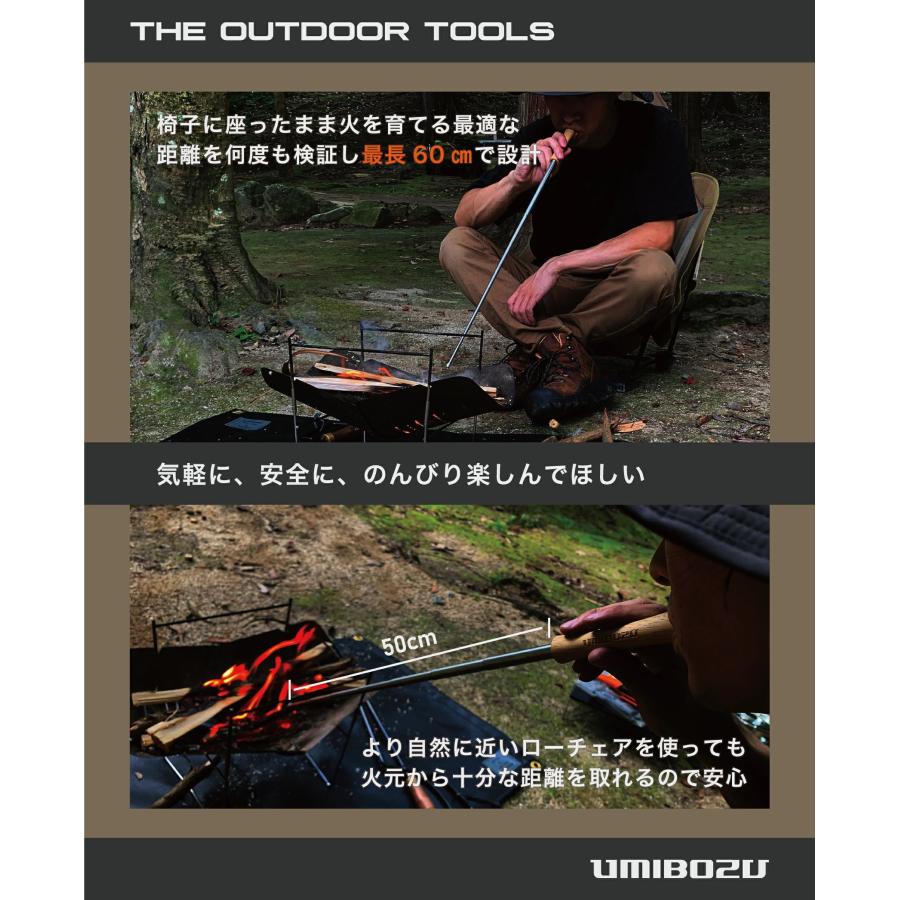 焚き火を育てるファイヤーブラスター、自然に馴染むデザインで作りました。