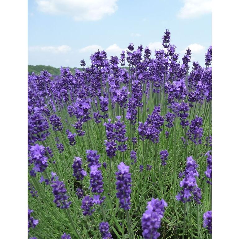 イングリッシュラベンダーの選抜品種で、早咲きです。コンパクトにまとまり、花は濃い紫色で、香りが良い種類です。北海道などで広く栽培されています。良い香りの花穂をポプリ、サシェ、などに利用します。暖地では梅雨時期から真夏にかけては十分な水はけと風通しを必要とします。