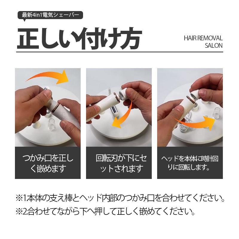 4種のアタッチメントを付け替えられるため、顔・脇・腕・足・Vライン のムダ毛までこれ一本で全て解決