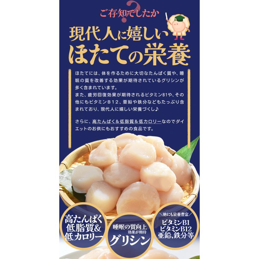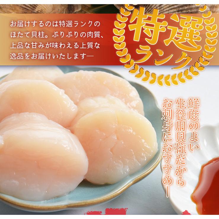 寒中見舞い ギフト 送料無料 ホタテ 貝柱 トップクラスのホタテ産地青森県で獲れた、希少な大きめサイズの特選ランクほたて貝柱。ぷりぷり食感と濃厚な旨みをお楽しみください