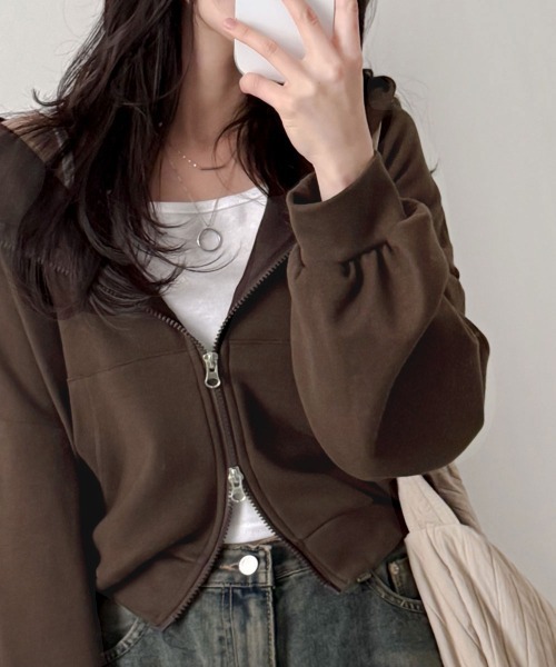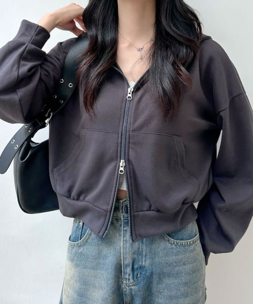 商品名:着回し力バツグン!ゆるっとラフな万能ショートジップパーカー ショート丈 ダブルジップパーカー 前面ポケット付き フルジップ 羽織 UV対策 冷房対策