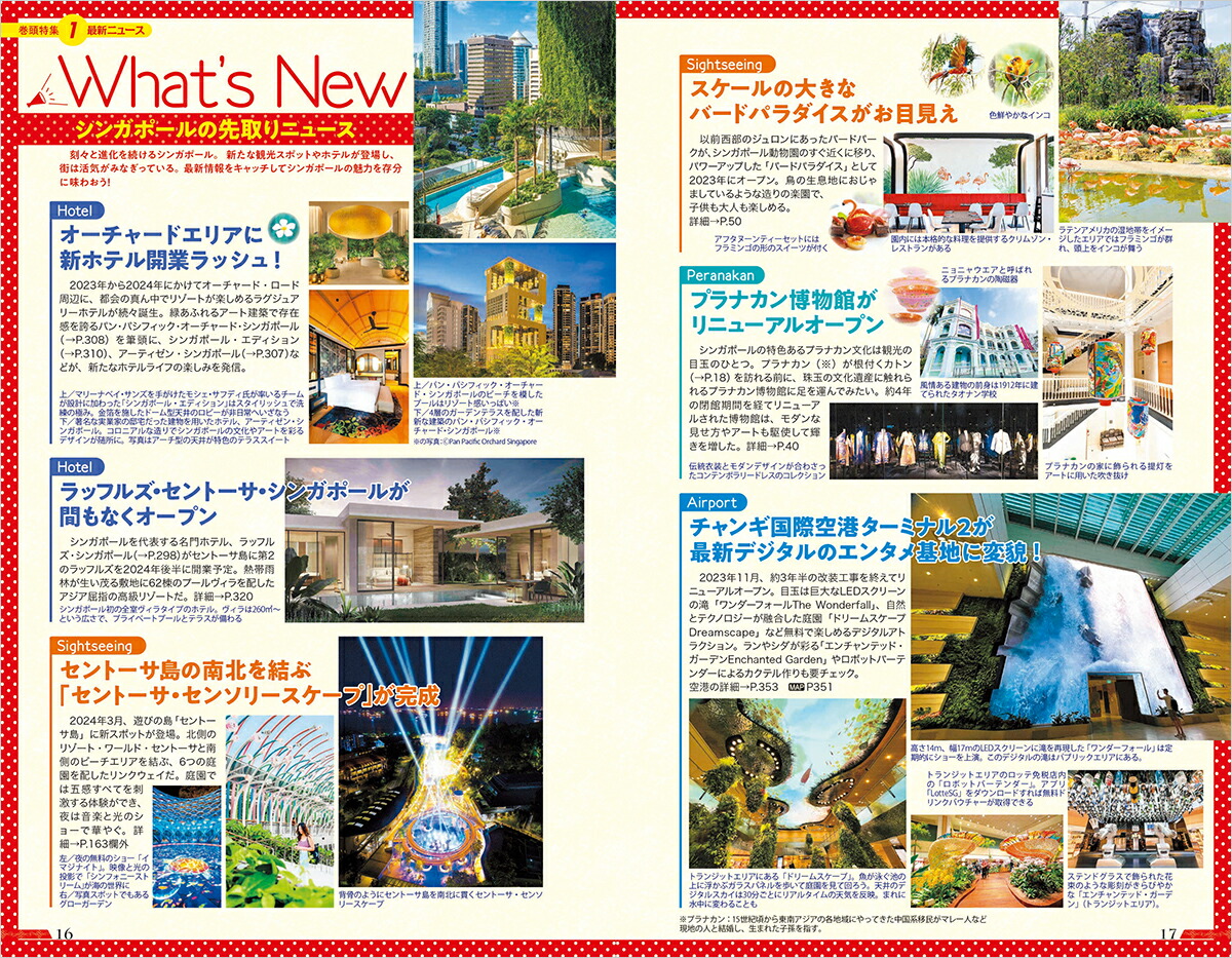 特集1 最新ニュース/特集2 エキサイティングな旬なスポット/特集3 プラナカン文化を楽しむ/特集4 エスニックタウン散策/特集5 マンダイ・ワイルドライフ・リザーブの四大動物王国/特集6 魅惑のグルメワールド/特集7 ときめきのショッピング/特集8 お得情報Tips/エリアガイド/料理別レストランガイド/エリア別ショッピングガイド/スタイル別リラクセーションガイド/グレード別ホテルガイド/旅の準備と技術編