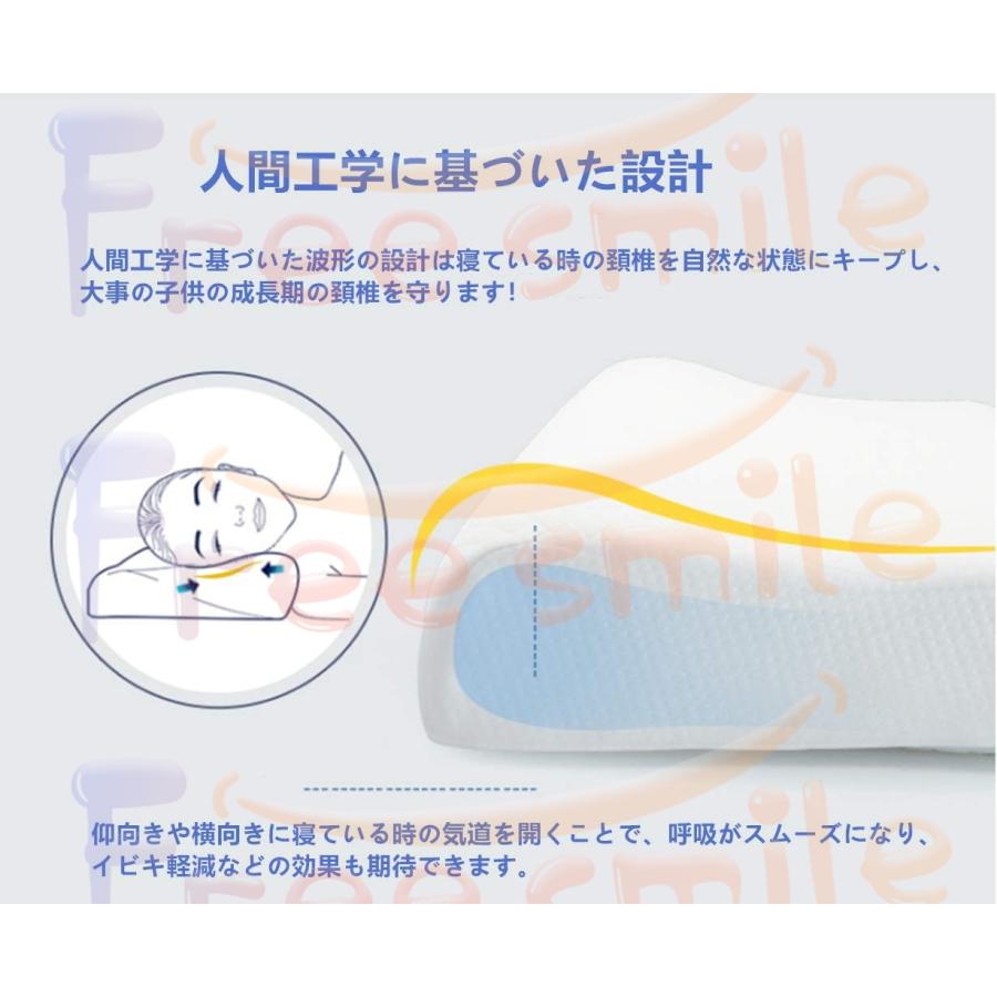 〈人間工学設計〉人間工学に基づいた波形の設計は寝ている時の頚椎を自然な状態にキープし、大事の子供の成長期の頚椎を守ります!仰向きや横向きに寝ている時の気道を開くことで、呼吸がスムーズになり、イビキ軽減などの効果も期待できます。