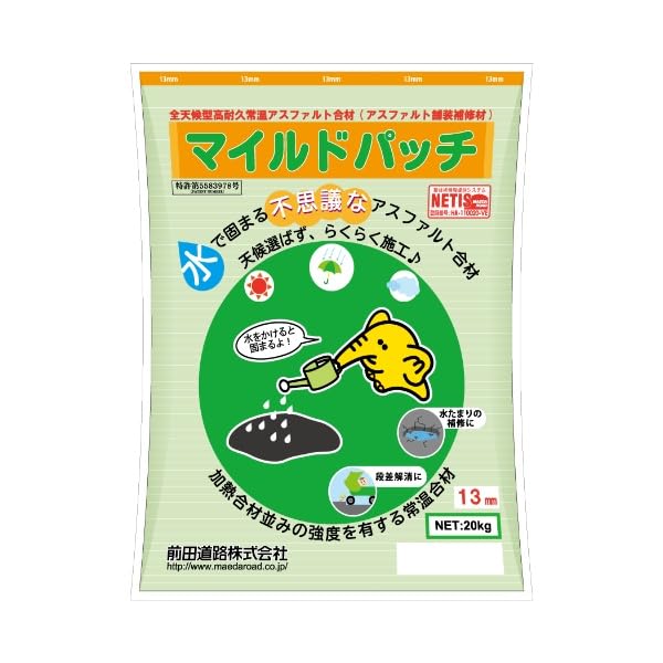 前田道路株式会社 全天候型高耐久常温アスファルト混合物 マイルドパッチ13mm 20kg アスファルト補修材