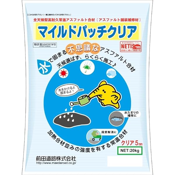 全天候型高耐久型常温アスファルト合材 マイルドパッチ 5mm クリア 20kg【アスファルト凹凸補修】 (F4-3BWS-BOTT)