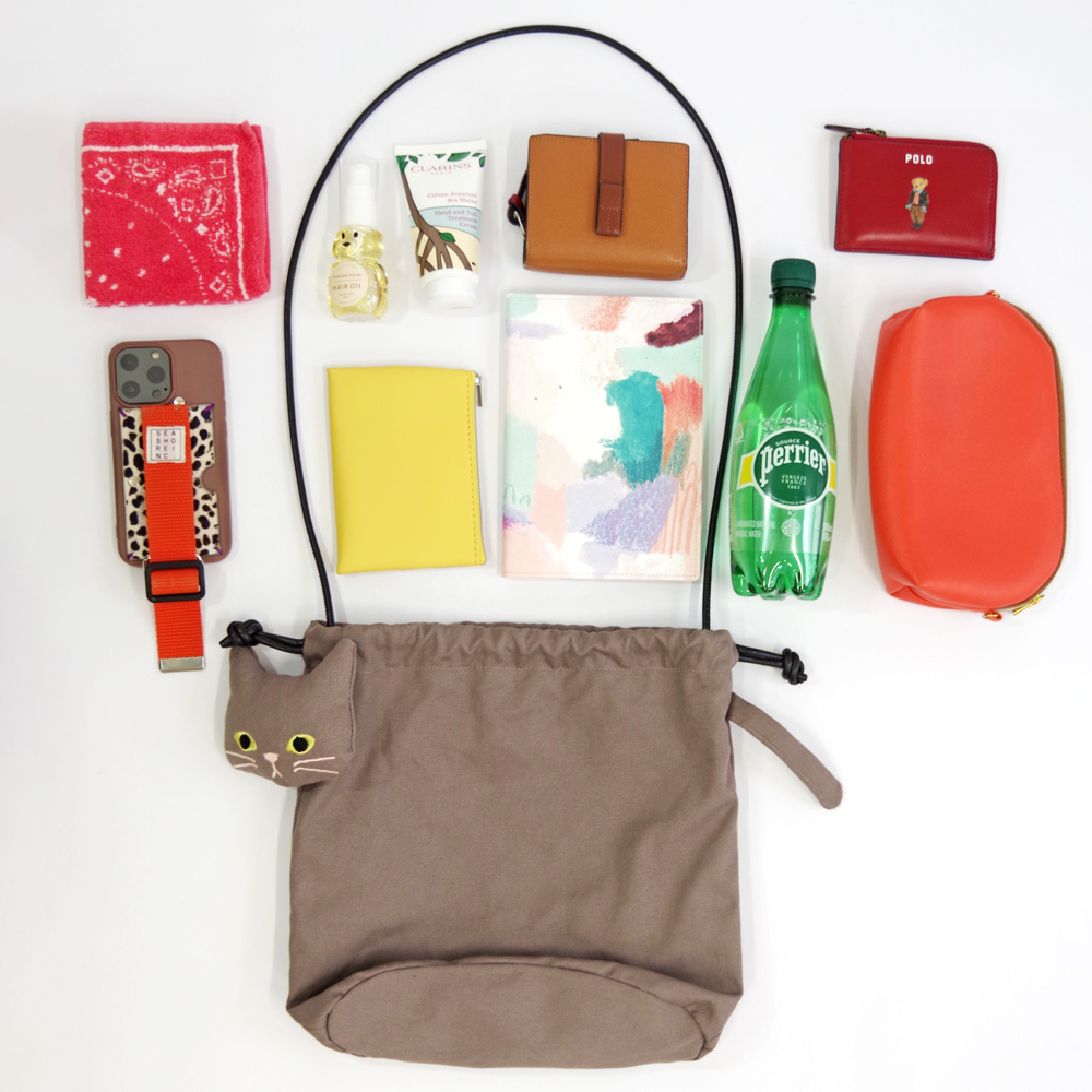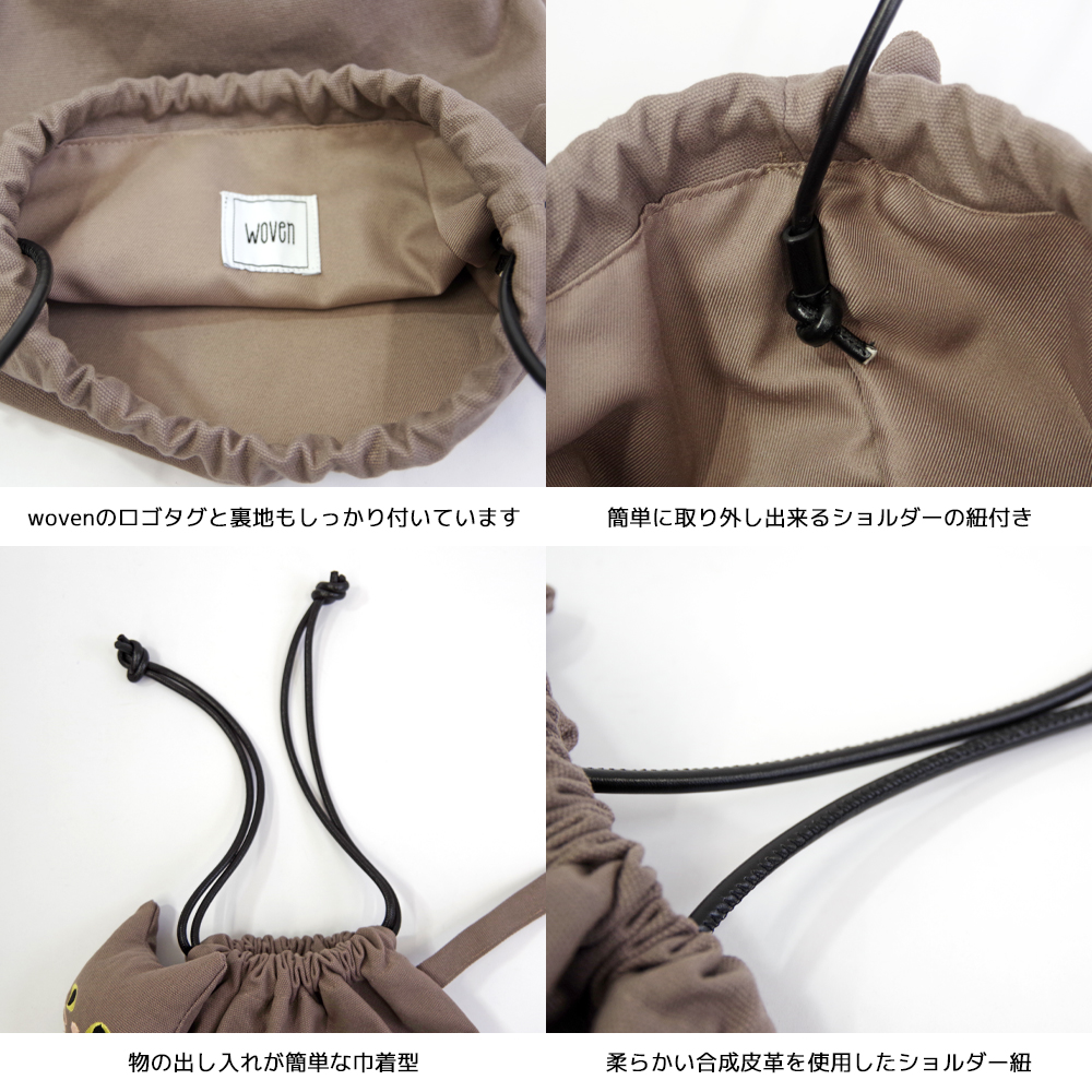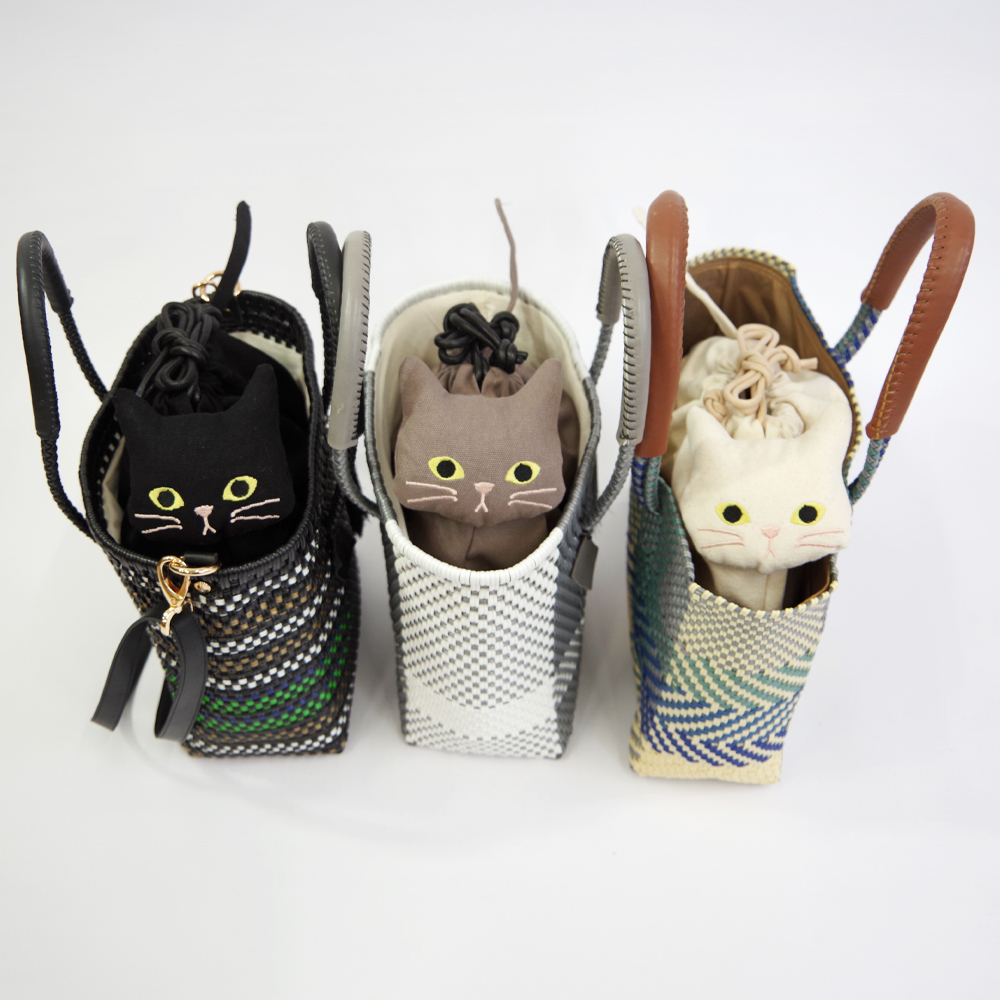 ネコの顔としっぽがWOVENメルカドバッグに入れた時に見えるようにデザインされた2WAYショルダーバッグ。