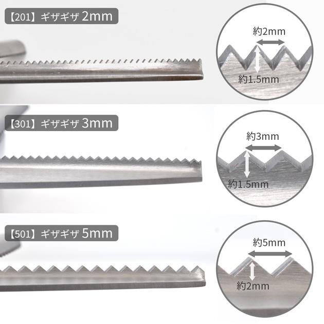 ギザギザタイプと波型タイプの2デザイン、切り口サイズ2mm〜5mmまで