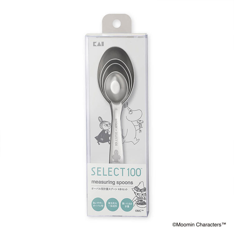 貝印 KAI 計量スプーン 4本セット 大さじ1 大さじ1/2 小さじ1 小さじ1/2 オーバル型 食洗機対応 お手入れ簡単 シルバー ムーミン×SELECT100 DH3203