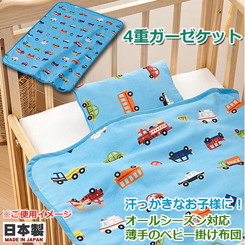 フジキ 4重ガーゼケット くるまパーク ブルー 日本製 ベビー布団 タオルケット 薄手 掛け布団 お昼寝布団 通園 おでかけ おうち ベビー 赤ちゃん