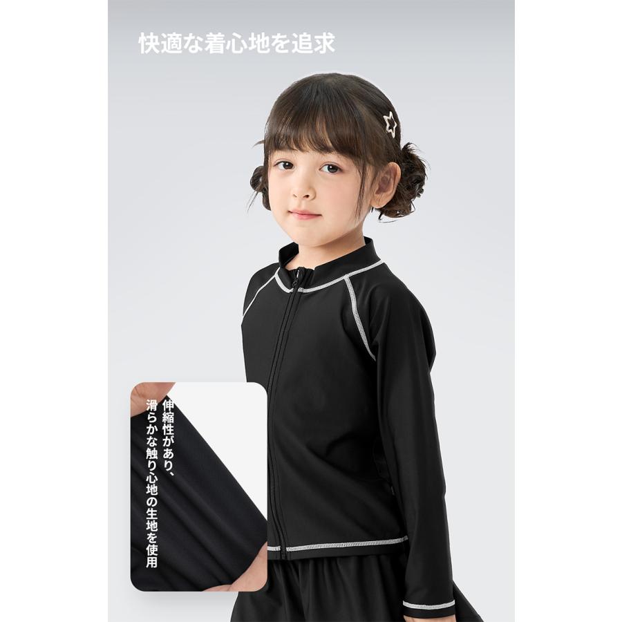 ラッシュガード キッズ スクール 長袖 スクール水着 フードなし フード無し ポケット ジップアップ